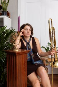 Olivia Menard is a freelance trombonist, composer and educator based in Treaty 6 territory. In addition to being a member of Coyote Brass Quintet, Uptown Entertainment, and Next Stop, Otago, she has appeared with Secondhand Dreamcar, The Brasstactics, Experience Points, Rumba Caliente, Crescendo, to name a few . She co-created The Music of the Spheres, a 45 minute kids show about a girl that learns to play trombone with a band from another planet. As an educator, she teaches trombone at MacEwan University, is a brass teaching artist at the Youth Orchestra of Northern Alberta and has taught band with Edmonton Catholic Schools.